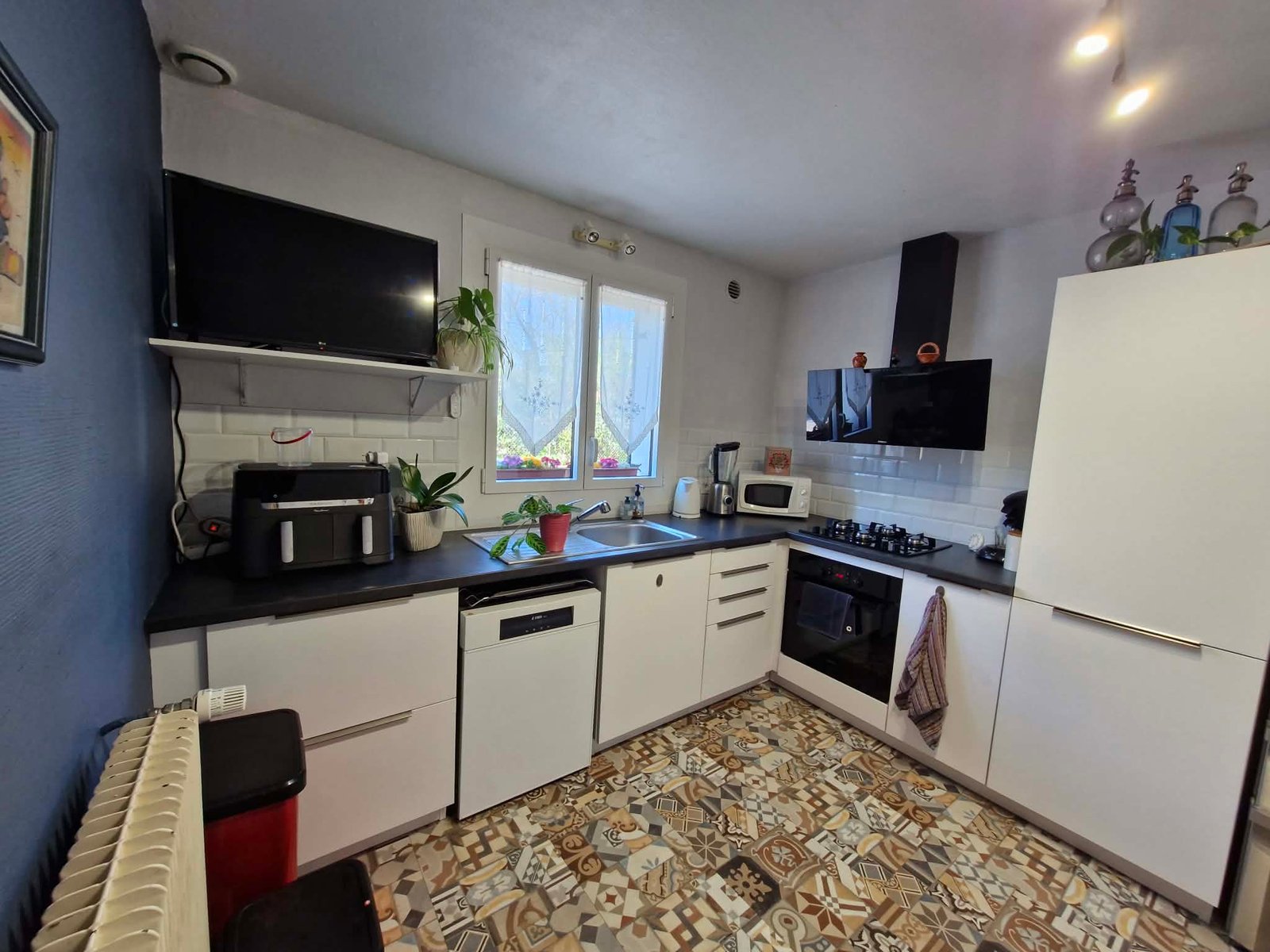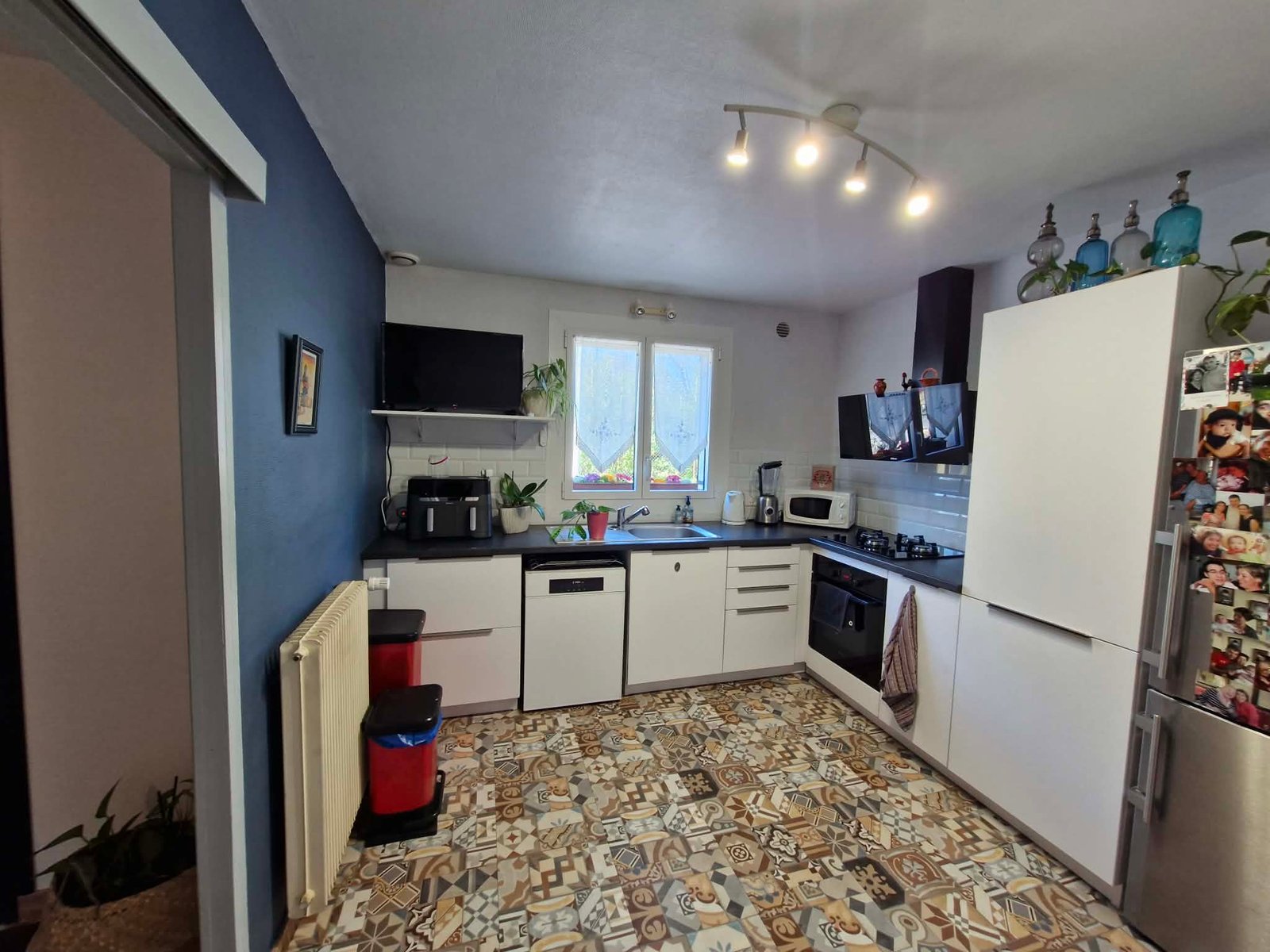 APS immobilier vous propose cette maison individuelle de plain pied entièrement rénovée à 5 minutes à pied du centre ville. Pièce de vie lumineuse et chaleureuse avec poêle à granulés. Cuisine équipée donnant accès sur une véranda. 2 Chambres, un bureau, salle d’eau avec douche à l’italienne, buanderie. Terrain clos et arboré de 1300 m² agrémenté d’une terrasse couverte et d’un abri voiture.